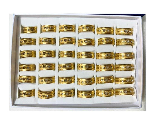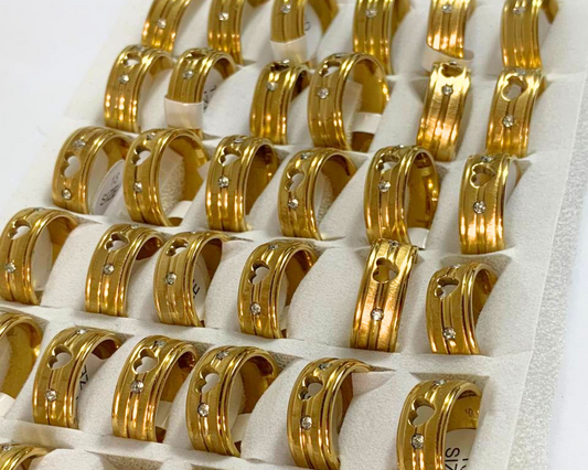 DIAMOND GOLDEN STAINLESS STEEL HEART RING WITH STRASS. 8MM – 36 UNITS
