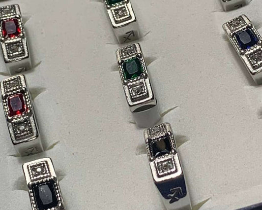 SILVER STAINLESS STEEL RING COLORED SQUARE SIGN VIRGO – Set of 12