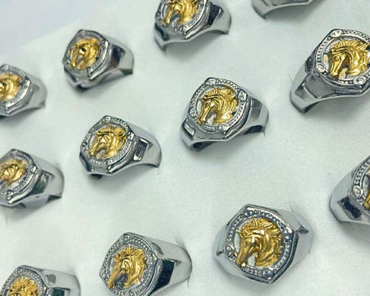 SILVER STAINLESS STEEL RING HORSE WITH GOLDEN – Set of 12