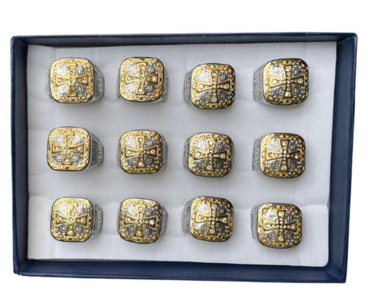 STAINLESS STEEL SAINT JORGE SQUARE GOLDEN RING – Set of 12
