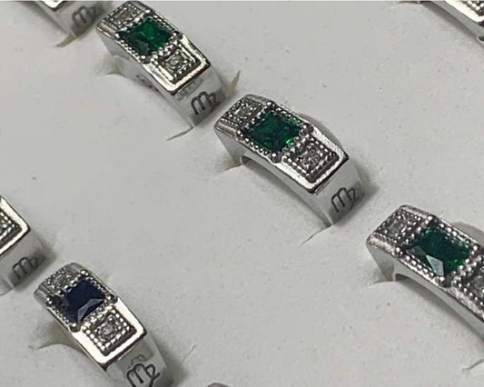 SILVER SQUARE STAINLESS STEEL RING WITH COLORED STONE – Set of 12