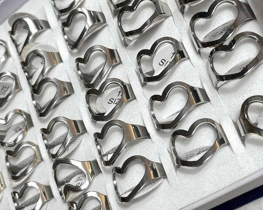 SILVER STAINLESS STEEL RING LARGE HEART- Set of 36