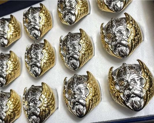 SILVER STAINLESS STEEL RING WITH GOLD VIKINGS- Set of 12