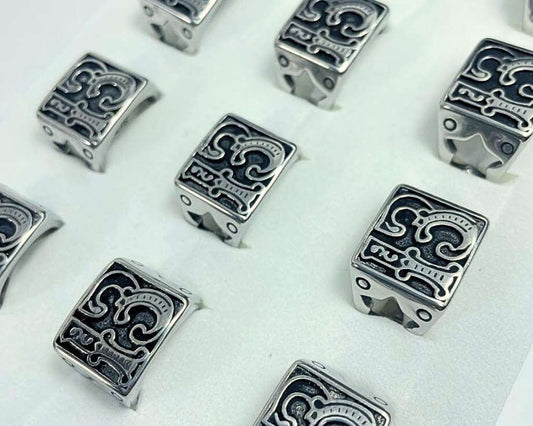 SILVER STAINLESS STEEL SAN JORGE OCTAGONAL RING- Set of 12