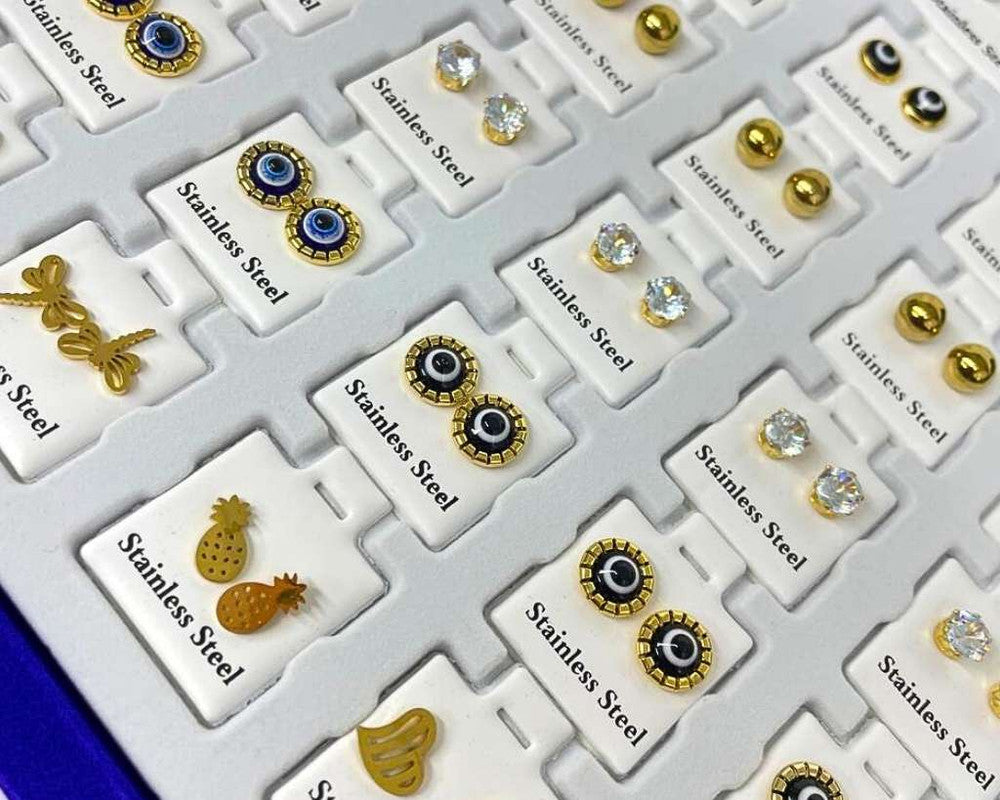 SET GOLDEN STAINLESS STEEL EARRINGS VARIOUS SHAPES- Set of 36